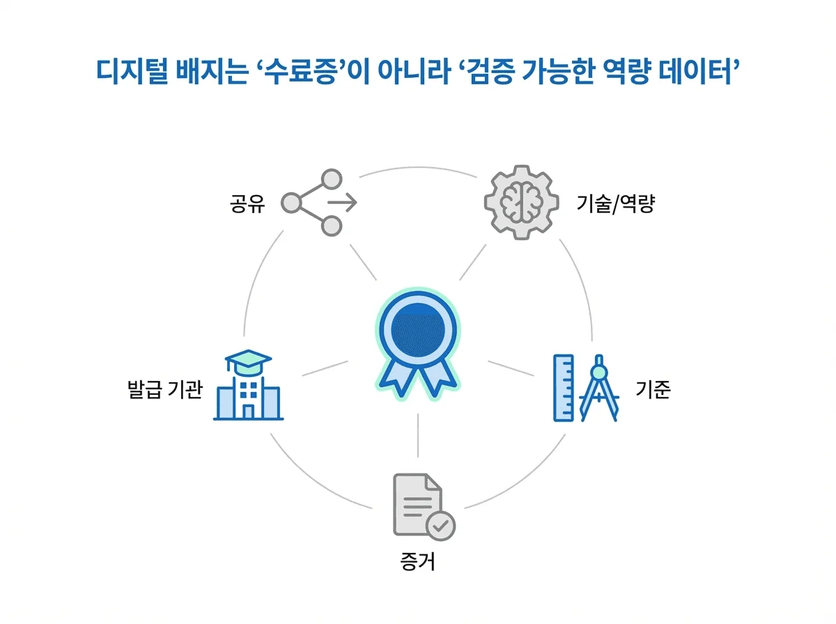 요약: 디지털 배지는 수료증이 아닙니다. 역량·평가·근거를 재사용 가능한 데이터로 남기는 장치입니다.