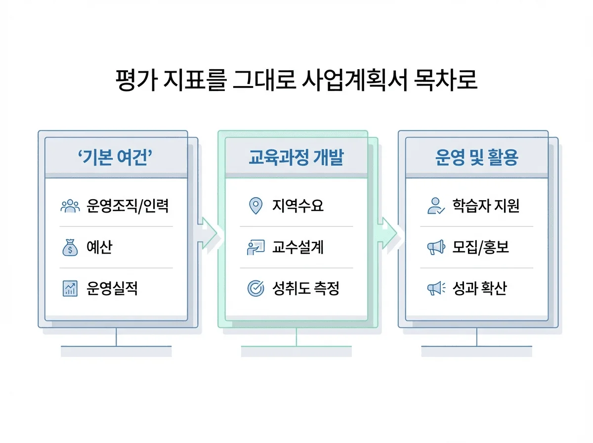 산학협력단·평생교육원 관점에서 심사위원이 보는 핵심은 세 가지입니다.