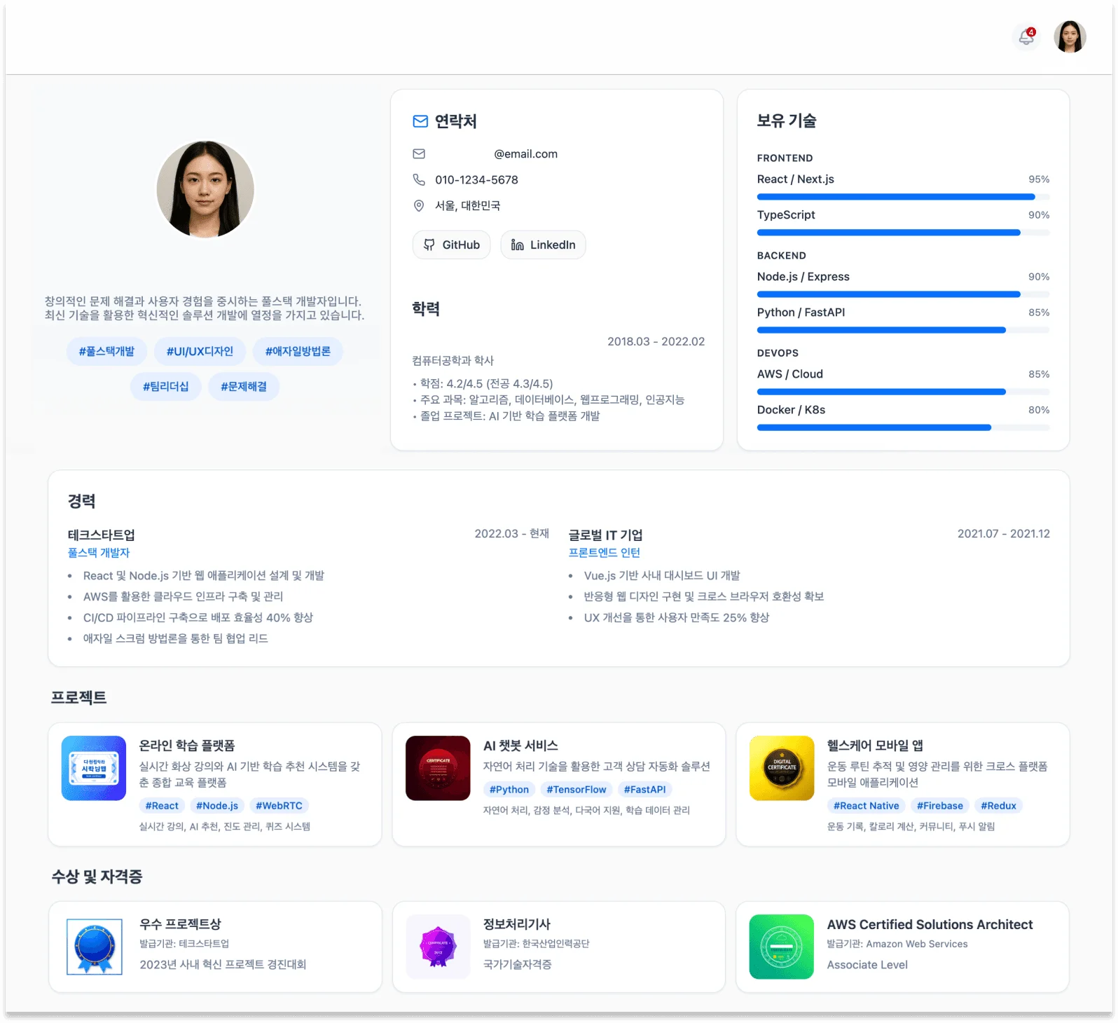 학습·프로젝트·성과를 체계적으로 관리할 수 있도록 돕습니다.