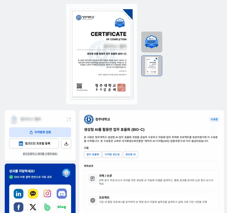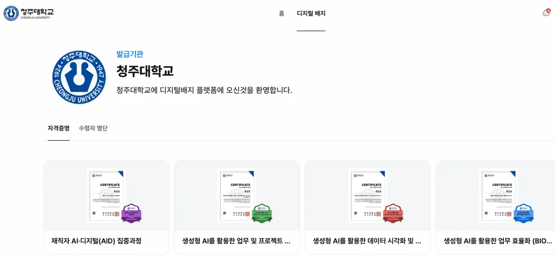 이 흐름 속에서 청주대학교가 Kolleges와 함께 대학 전용 디지털배지 플랫폼을 구축하며 새로운 학습 인증 모델을 도입했습니다.