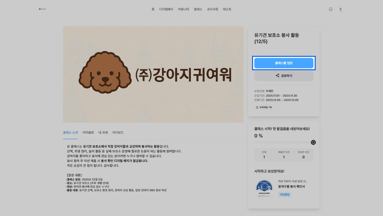 디지털 배지 연계 클래스 이용 방법 | 수강·학습·미션 참여 가이드