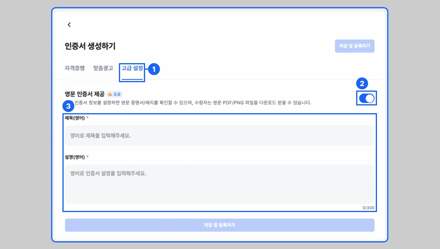 [영문 인증서 제공] 스위치 버튼을 {ON}으로 설정합니다.