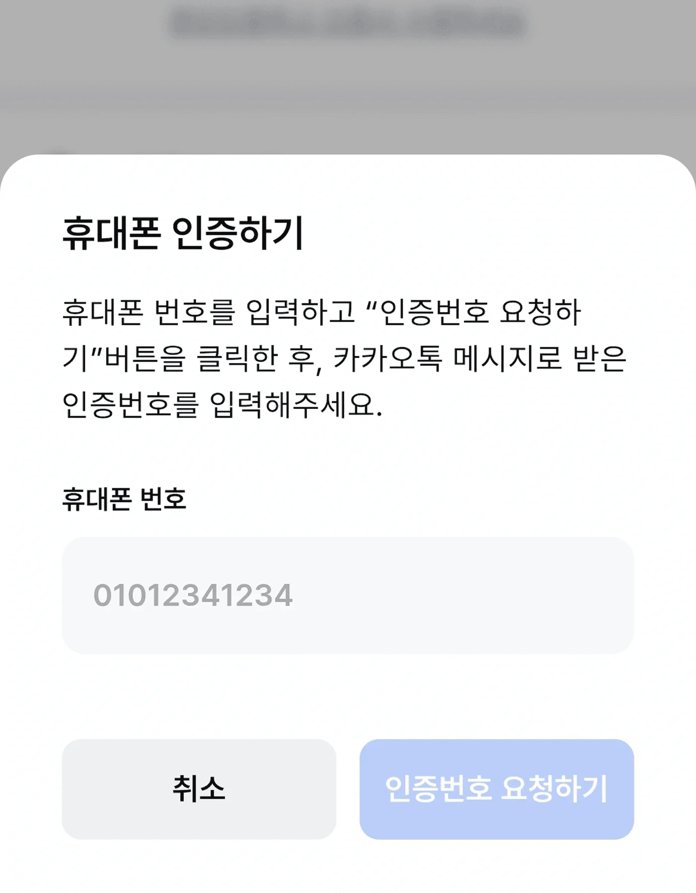 [카카오톡 간편 인증] 버튼을 클릭합니다.