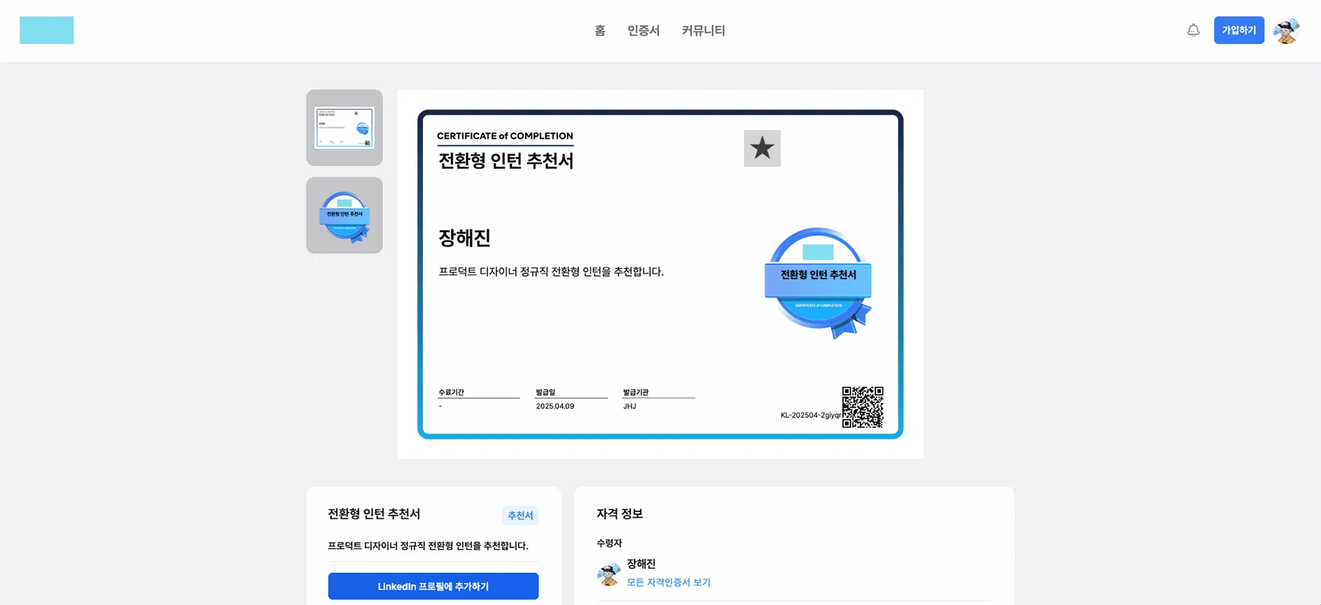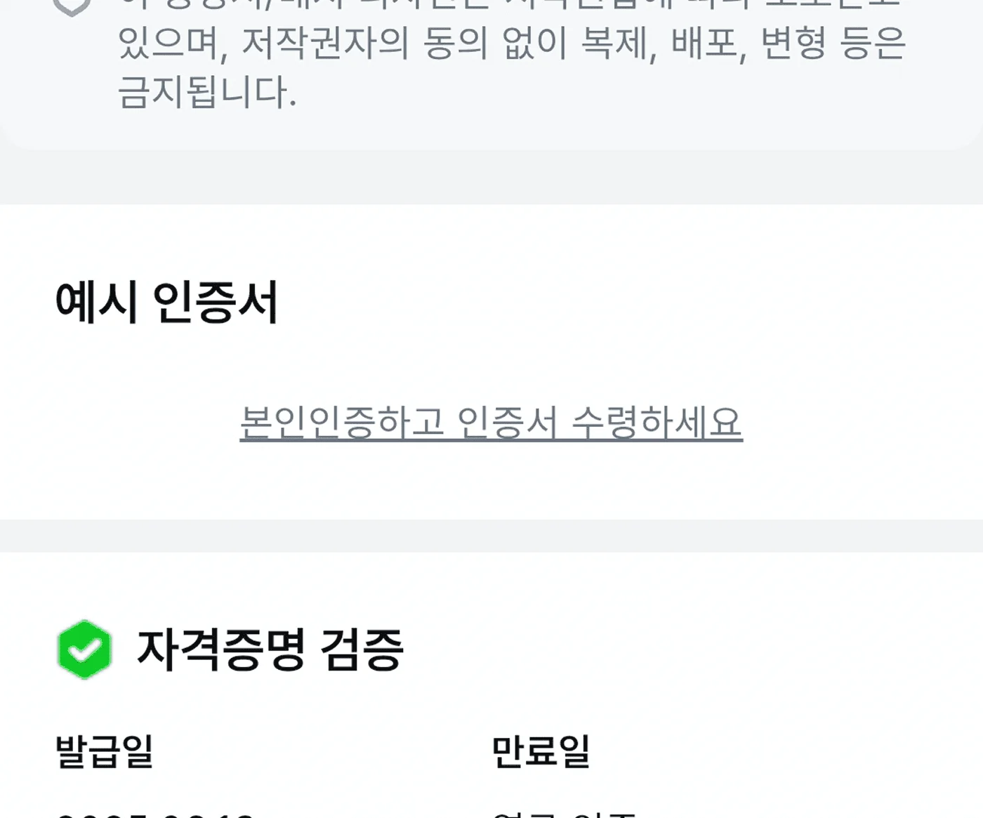 팝업에서 인증을 완료하면 인증서 수령이 완료됩니다.