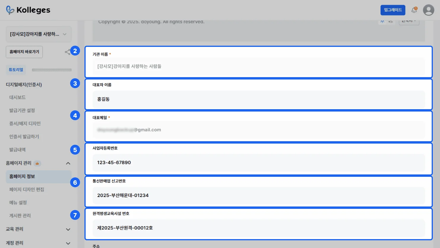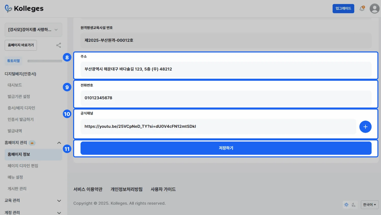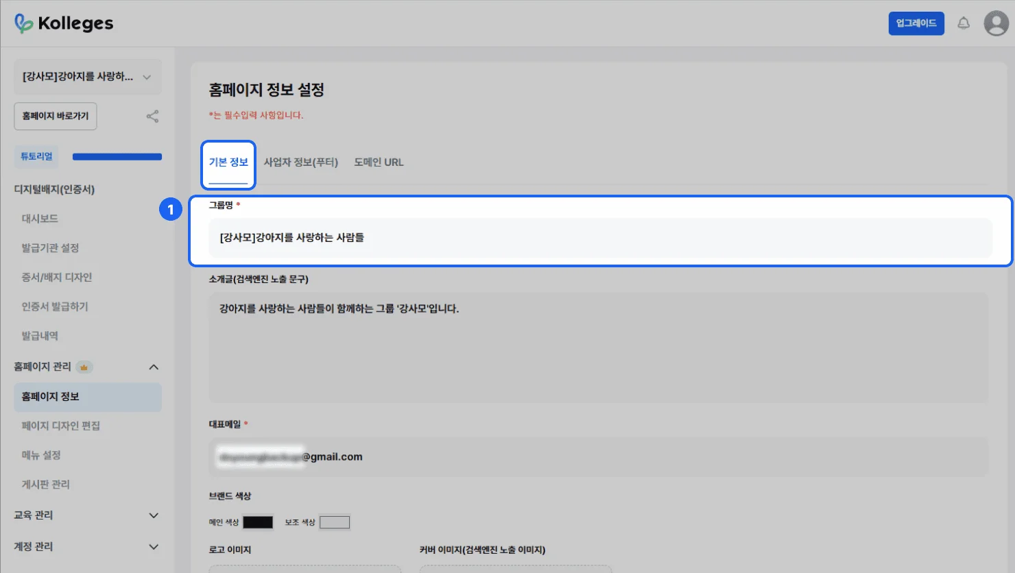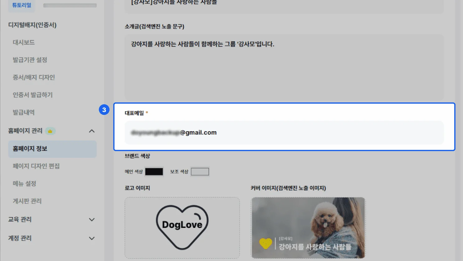 디지털 배지 홈페이지 정보 설정 방법 | 기관 기본정보 등록 가이드