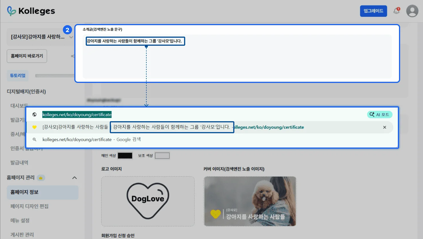 소개글: 홈페이지의 소개글입니다. 홈페이지 검색 시, 해당 소개글이 그룹명과 함께 노출됩니다.